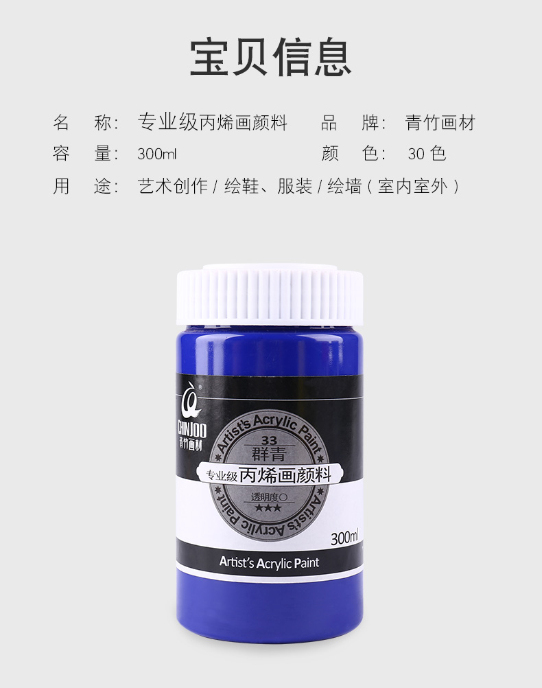 青竹丙烯畫顏料 300ml丙烯畫顏料室內外專用 120色 貨號750#